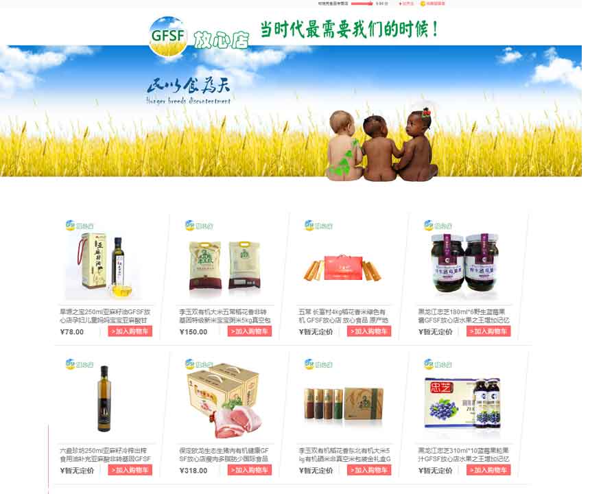 在国际食品安全协会品牌支撑下,与政府协作,是以食品安全为切入点,打造O2O模式的农产品电商平台。携手知名电商平台京东、淘宝、亚马逊、微店——四大平台联手打造GFSF安全食品放心店。商水县名优特产及特色农产品生产、加工企业和农民专业合作社,通过系列食品安全体系建设和品牌推广策划统一在四大电商平台向广大消费者提供优质农产品,成为国内安全食品电商专营旗舰店!